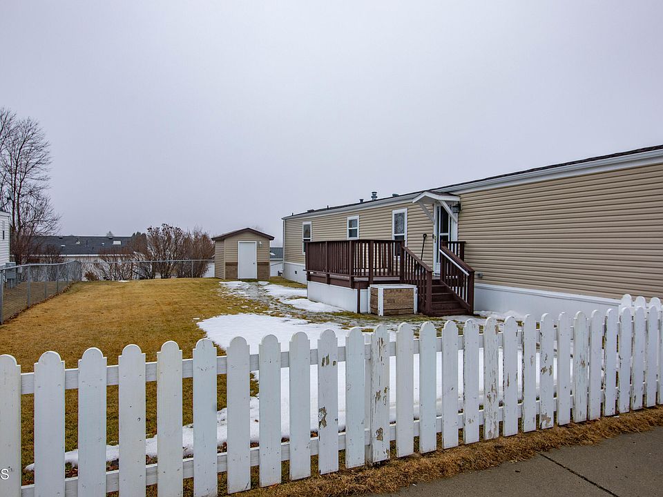 Welcome to 4533 Lafayette Drive. This home has many updates throughout and is located in NE Bismarck.This mobile home is the perfect blend of comfort and contemporary living. You will walk into a spacious living room combined with a large kitchen that has plenty of cabinet space with a beautiful brick detailed island. The primary bedroom has two oversized closets and walks straight into a large full bath with double sinks, shower, and large garden tub! There are two additional bedrooms, full bath, and a separately located laundry area with a brand new washer and dryer! You don't want to miss out on this quiet Century Park location!