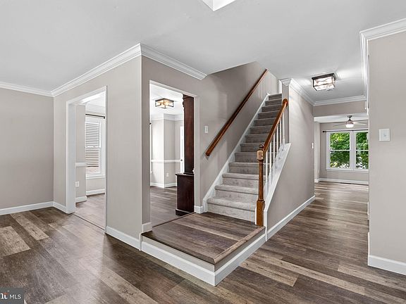 Charming colonial residence offering 2,544 square feet, 5 bedrooms, 3 full baths, 1 half bath, and a 1-car garage, ideally situated on a tranquil cul-de-sac in serene Wheatfields. A welcoming front porch sets the tone for the inviting interior. Step inside to find luxury vinyl tile flooring throughout the main level, beginning with a bright foyer that flows into the formal living and dining rooms, both adorned with elegant crown molding. Just off the foyer is a private study—ideal for a home office, reading room, oR creative space. The bright and stylish eat-in kitchen, fully remodeled in 2025, features white cabinetry, quartz countertops, stainless steel appliances, and a cozy breakfast area. The kitchen opens seamlessly into the spacious family room, complete with a white brick wood-burning fireplace and direct access to the backyard. A chic powder room and a laundry room with a new washer and dryer (installed in 2025) complete the main level. Upstairs, you’re welcomed by a versatile loft sitting area before entering the luxurious primary suite, which includes a walk-in closet and a beautifully updated ensuite bath. Three additional bedrooms, one with vaulted ceilings and double closets, share a second full bathroom—also renovated in 2025 with modern fixtures and finishes. The walk-out lower level expands the living space with a large recreation room, a bedroom, a flexible bonus room, and a full bath—perfect for guests, hobbies, or entertaining. Outside, enjoy the composite wood deck with built-in bench seating and stairs leading to a lower patio with a hot tub. The fully fenced backyard is professionally landscaped with winding stone pathways—an ideal setting for outdoor gatherings or a peaceful retreat.