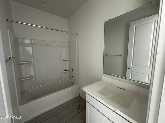 Come enjoy this 1,381 sq ft, 3 bedroom, 2 bath Primrose floorplan. The covered entry is the perfect starting point to this home. Step into the foyer and you're greeted with 2 bedrooms up front and a full bath and linen closet - perfect for the kids or a home office. This kitchen features the Artisan Premium Palette and is light and bright with quartz countertops and white, shaker-style cabinets all around. Stainless appliances as well as a side-by-side fridge will already be waiting. This open floor plan has easy access to the backyard through the 4 panel sliding glass doors. This home features blinds throughout, 8 foot doors, a full size washer and dryer and the garage motor. This home accentuates the indoor-outdoor lifestyle Arizona is known for; easily slip out to the covered patio and enjoy your morning coffee. The well-appointed owner's suite features double sinks, shower with glass doors, linen closet, and large walk-in closet. You'll enjoy parks, picnic areas, the pool and plenty of activities that Eastmark has to offer.