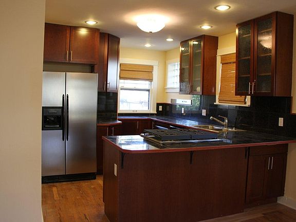 WOW! Situated in the heart of Denvers highly sought after West Highland neighborhood, this beautifully updated, south-facing bungalow awaits! Located mid-block on a quiet, well-kept street. New landscaping (2021) and newer roof (2013)! The inviting front porch boasts fresh paint and is the perfect place to relax. Open the door to unveil an entry vestibule with large coat closet and new tile underfoot. The living room will host the most substantial furniture pieces all focused round the gas fireplace with painted white brick and brand new hearth tile. True to the build era with a large picture window and 7 1/2 baseboards, yet the newly finished hardwood floors and popular fresh paint give it a modern feel throughout the main level. An arch leads the way to the formal dining space, which has ideal interaction with both the living room and the adjoining kitchen. It is updated with cherry cabinetry, granite tile counters and backsplash, as well as stainless appliances including a KitchenAid gas stove. A pantry closet is an added bonus! In true bungalow style, the main level has two bedrooms, one of which has French doors that lead to a sunroom/flex space, perfect for working at home! Separating the bedrooms is a full bath, remodeled with a desirable black, white and gray theme. The professionally finished, permitted basement (2017) nearly doubles the living space and is host to a large family room. The spacious bedroom has dual egress windows, a huge walk-in closet and a three-quarter bathroom to die for! Theres also a non-conforming bedroom which is a convenient bonus for secondary study space, exercise room or storage. The laundry room includes a full size washer and dryer. Outside, youll be impressed with the size of the low maintenance, fully fenced yard, huge stamped concrete patio and a rare one car garage with supplemental alley parking space. A casual stroll will take you to Highland Square, Tennyson Street, Sloans Lake and so much more!