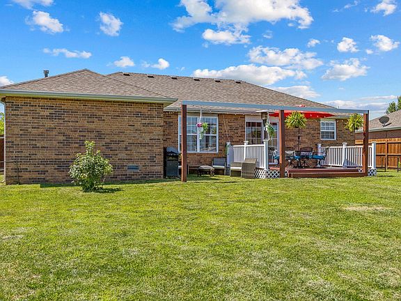 Located in the heart of Battlefield, this all brick home boasts a desirable location with easy access to the highway, dining, shopping, and entertainment of Springfield, local amenities, parks, and top rated Republic Schools. Whether you're looking for a quiet place to relax or a vibrant community to explore, this home has it all - inluding move-in ready living with major upgrades, making it better than new, with almost $25,000 in upgrades just in the exterior of this property, as well as a newer roof (2019) and newer HVAC (2019). The new oversized deck is perfect for quiet evenings, summer days, and for entertainment and creating amazing memories with your loved ones. The beautifully landscaped and fully newly fenced yard provides an inviting private outdoor space, perfect for enjoying BBQs with friends and family. Included is the 15 year fence warranty and new shed. Inside, you'll find a thoughtfully designed interior with a spacious living area and vaulted ceilings. The open floor plan is graced with lots of natural light, creating a warm and welcoming atmosphere. The kitchen is conveniently located next to the walk-through pantry, laundry room, and walkway to the garage. The beautiful kitchen features new high end stainless steel appliances including a LG refrigerator, LG range, and Samsung dishwasher. Other upgrades include newer carpet, paint, and fixtures. This home is also fully equipped with owned ADT Home Security equipment, offering a unique opportunity to experience modern living at its finest. Connected to the master bedroom is an extra spacious ensuite with a walk-in closet, double sinks, and extra storage space. Pride of homeownership shines through on this lovingly maintained and recently upgraded home. This perfect home is sure to bring energy and excitement to your life, with just a short drive away from the constant hustle and bustle of the city. Don't miss the chance to make it yours, call today for your private tour