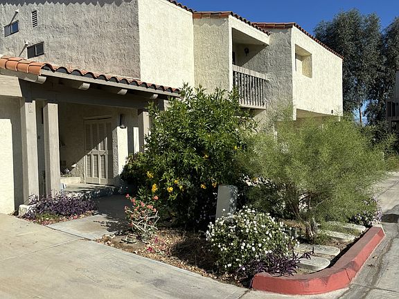In the gated community of Mountain Villas in Palm Desert is this unfurnished, split-level designed townhome with 2 bedrooms and 2-bathrooms. It is available for rent immediately and includes essentials such as a washer and dryer in the garage, electric stove, and ceiling fans in every room. Bonuses include an attached 2-car garage at ground level, two patios off the living room on the first level, and a balcony off each bedroom that are on different levels too. The patio is ideal for enjoying the gorgeous views of the greenbelt and surrounding mountain vistas. Amenities in Mountain Villas include a recreation room, three heated pools and spas, and two tennis courts. This area of Palm Desert is close to El Paseo and mall shopping, the Indian Wells Tennis Garden, and a short drive to La Quinta, Indio, and Coachella where there are art and music festivals, and good food! Move-in costs include rent, one month rent as a security deposit, and a $100 portal set-up fee. Each adult over 18 must apply ($50 non-refundable app fee). Please call for a showing. Jan Cox, DRE#02054367