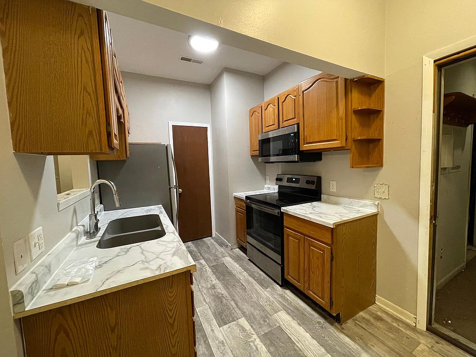 Freshly painted with new flooring, new appliances, countertops, tub, bathroom vanity and lighting. Shared laundry on site and included in rent. Background check required for all tenants 18 and over. Renter pays electric/gas.