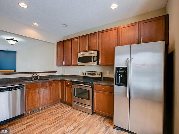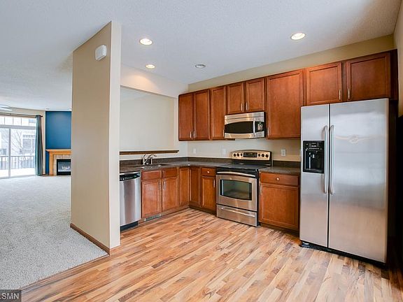 Airy townhome with Greenwich floorplan that makes easy living for anyone! Gorgeous maple trim and staircase rails, stainless steel appliances, silestone countertops, vaulted master ceiling with private garden bath & separate shower, gas fireplace, upgraded lighting and carpet, epoxy garage floor, fresh paint throughout. Finished lower level, fourth bedroom with bathroom roughed in. New carpets & fresh paint! Conveniently located close to Hwy 169 for quick commutes, shopping and restaurants.