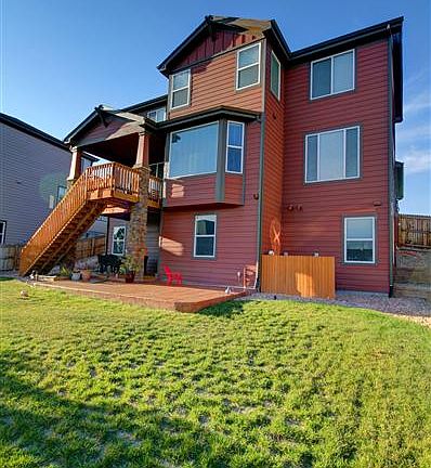 FOR SALE OR RENT. Incredible Taylor Morrison home with best location in Homestead Hills. Top of the hill, across the street from Homestead Hills Park, views of the city from the covered deck, minutes from DIA--location, location, location. Inside features a gorgeous gormet kitchen with Silestone counters, stainless steel appliances, and cherry wood cabinets. Beautiful harwood floors, new lux carpet, new paint, built-in surround sound, 3-car garage...it just keeps going... Did you know that appraisers will add $20K for a walk-out basement? Call Chip Bruss for details, 303-638-8242. Neighborhood Description Incredible family neighborhood, great school district, park across the street, close to shopping, and easy access to the airport.
