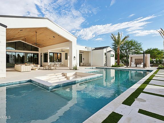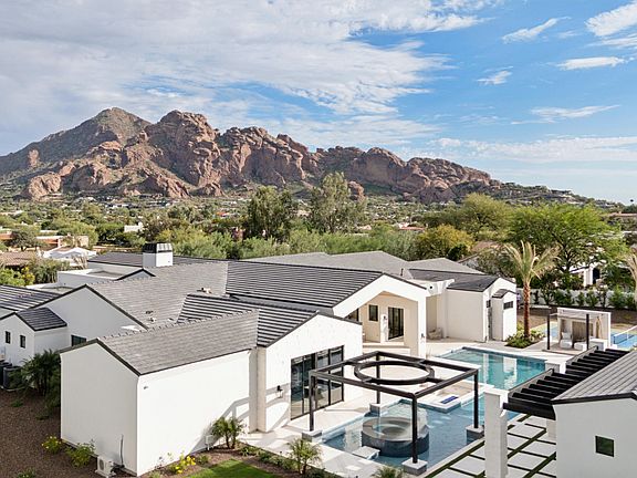 A newly completed property by LuxEstate Development. One of the most exquisite new builds to arrive in Paradise Valley this fall, this homesite is composed of 8,321 SqFt of refined living on over an acre. Framed by floor to ceiling vistas of Camelback Mountain, the composed and elegant architecture by John Cates is designed for grand entertaining while preserving the calm of a private retreat. Inside, every selection speaks to craftsmanship—imported stone, custom millwork, and exacting lines that guide the eye to the mountains beyond. The main residence features five bedrooms and 6.5 bathrooms, anchored by a private executive office and an elegant bar and lounge that sets the tone for sophisticated gatherings. A back kitchen with premium appliances and custom cabinetry supports seamless service for events large or small, while a Dolby Atmos theater delivers true cinema at home. The primary suite is a sanctuary: generous and sunsplashed, with a 600 SqFt custom closet and a spainspired sauna that underscores the home's emphasis on wellbeing and ease. For guests, a separate onebedroom, onebath guest house stands as a complete residence, thoughtfully appointed with a full kitchen, laundry, and a spacious living areaideal for extended visits or private work retreats.