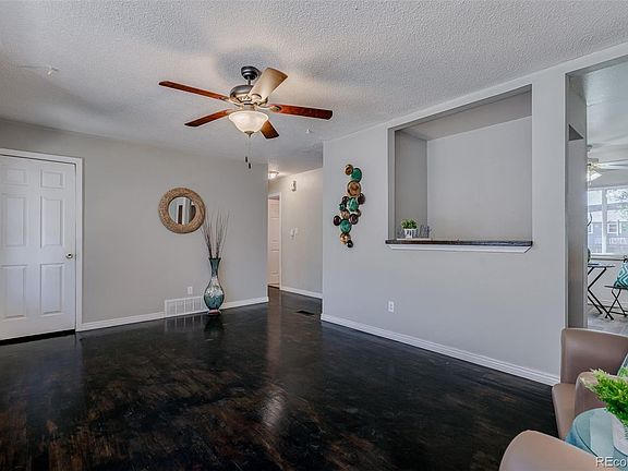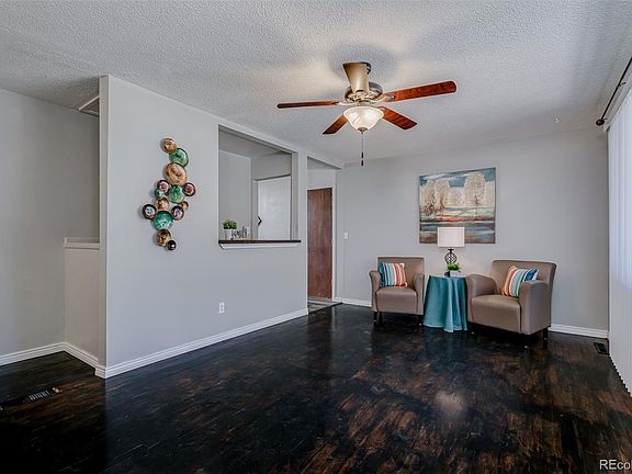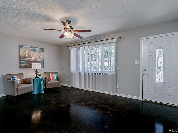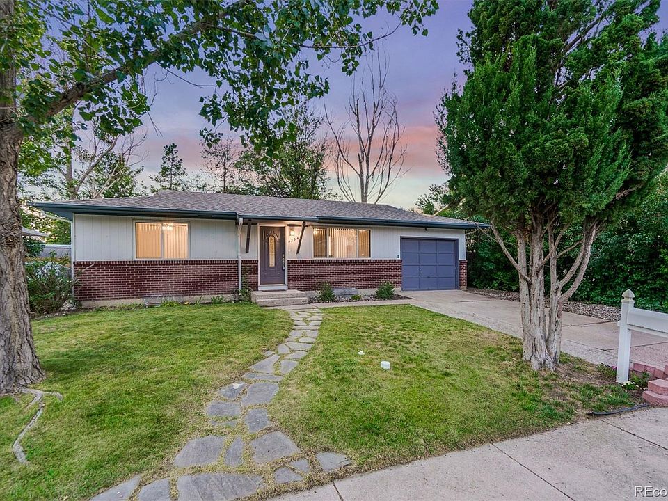 Great value in this stucco and brick rancher in the quiet, established neighborhood of Vista Grande. Newly refinished hardwood floors in the Living Room, Hallway, and main level Bedrooms. Vinyl windows and 6-panel doors. The Living Room has a lighted ceiling fan and large window that brings in lots of natural light. Updated eat-in Kitchen with driftwood look tile floors, new custom cabinets with tile countertops, double stainless-steel sink, a dishwasher, 5-burner gas cooktop, built-in oven, and side by side refrigerator. 2 Bedrooms with lighted ceiling fans and a full Hall Bathroom are located on the main level. The Bathroom has tiled floors, a vanity, and tiled tub/shower. The finished Basement features a Family Room with neutral carpet; Laundry Room with pantry and shelves for storage; full Bathroom with tile floor, vanity, and tiled tub/shower; and 3 Bedrooms (non-conforming for egress). The fenced backyard includes a concrete patio and walkway, storage shed for tools and toys, a pond, and mature trees and shrubs. Oversized 1-car attached garage with service door to the backyard, shelves and cabinets for storage, and a 2nd refrigerator that stays. Convenient location close to schools, the Palmer Park with miles of hiking/biking trails, playground and a dog park. The Vista Grande Community pool is walking distance from the house (membership required).