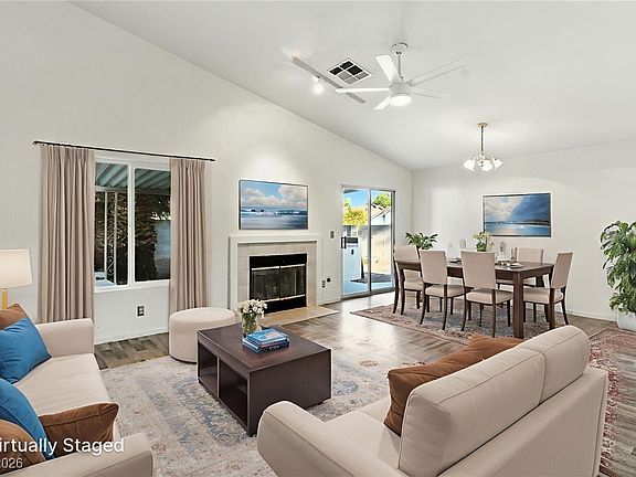 New A/C July 2025 **APPLIANCE INCENTIVE $3,000 APPLIANCE INCENTIVE**This beautifully maintained highly sought after single-story home offers everything you’ve been searching for and more! Step into an oasis backyard, complete with a sparkling pool, relaxing spa, and a large covered patio perfect for entertaining or unwinding in your own private oasis like retreat. Inside, you’ll find 4 spacious bedrooms and 2 full baths, with no carpet throughout for low maintenance and perfect for pet lovers. The large kitchen flows seamlessly into an oversized living room with a cozy gas fireplace, creating a warm and inviting atmosphere ideal for large gatherings. The primary suite features dual closets and generous space for rest and relaxation. All additional bedrooms are generously sized, making this home perfect for families or those needing extra room. Sitting on a large lot with low-maintenance landscaping, there’s ample space for extra guest parking or RV parking and best of all, NO HOA