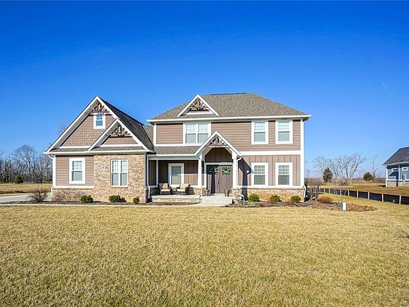 Nestled on over 1 acre, this 3 year young impeccable custom home has the perfect layout featuring main floor master, huge bonus rm, office space & fin basement. Kitch featuring white cabinets, island & bar top opens to impressive 2story great rm w/amazing stacked stone fireplace & breakfast rm overlooking large 1+ acre yard & mature trees. Awesome Master is true retreat w/deluxe tiled shower w/2 rain shower heads & soaker tub w huge W/I closet. Upstairs has 3 beds, full bath & bonus rm perfect for play space. Fin basement w/wet bar, bev fridge, rec rm, exercise rm & storage. Convenient tiled mudrm w organizational lockers off garage. Enjoy a huge back yard w/patio, fire pit & privacy. Short commute downtown & minutes to shops/restaurants.