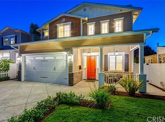 Stunning newer construction home in sought-after Sherman Oaks neighborhood. Gorgeous curb appeal, paved driveway, manicured lawn, and front patio. Upon entry, guests are welcomed by soaring ceilings, designer lighting fixtures, wood floors, custom shutters, crown moldings and custom touches throughout. The elegant living room with fireplace and coffered ceilings, formal dining and butlers pantry lead you into a Gourmet Chefs kitchen with GE stainless steel appliances, Carrera marble counters, an impressive island and a breakfast nook. A spacious family room with brick fireplace and beautiful built-ins are accented with french doors that open up to a tranquil private yard. Upstairs, relax in the romantic master with vaulted ceilings, fireplace, two walk-in closets, and spa-like bath with marble counters, soaking tub and glass rain shower. Unwind in the entertainers back yard with a sparkling pool and spa. Additional conveniences include upstairs laundry room and 2 car garage. Enjoy everything Sherman Oaks has to offer with close proximity to fine dining, shopping, and more.
