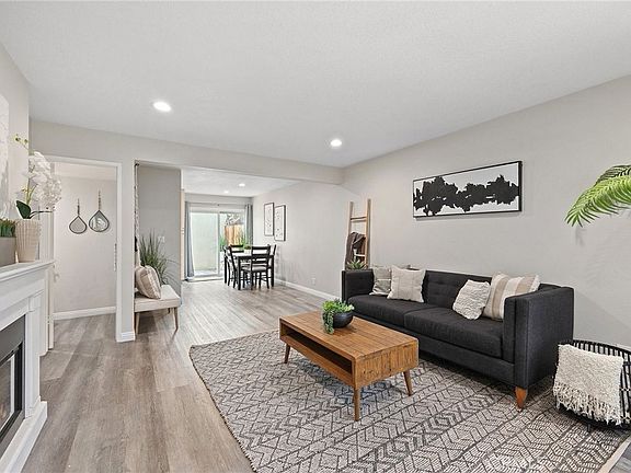 What a stunning property! This charming two-bedroom Yorba Linda home sits in a quiet community directly adjacent to a horse/bike trail and a beautiful park. Nearby you will enjoy access to not only great shopping and dining but also award winning PYLUSD schools. As you enter the property you are welcomed by the wonderful feel created by an open floor plan. The gorgeous luxury vinyl flooring and recessed lighting flow nicely throughout the downstairs. The updated kitchen features granite countertops, soft-close drawers, a built-in microwave and a lovely tile backsplash. Downstairs you will also find the living and dining areas, as well as a remodeled guest half bathroom. The flagstone flooring on the patio creates a wonderful space to relax outside. This unit is one of the few in this complex to boast direct access from the attached patio to its two-car garage. Laundry hookups are located inside the garage along with plenty of storage. Upstairs you will find a wonderfully remodeled full bathroom and both bedrooms. The primary bedroom has two closets and a private balcony overlooking the greenbelt. The Jamestown association gives you access to a pool, playground, large grassy area, basketball court, and tennis courts. Don’t miss the opportunity to OWN this great home!