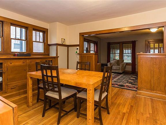 This exquisite 1920âs Craftsman 1 1/2 story is loaded with charm and originality. A spacious living room with hardwood floors, oak woodwork, fireplace leads to a dining room with original built-in buffet and plate rails. White kitchen with stainless steel appliances and tile floors. Main floor has 1st floor master plus 2nd room suitable for study/den/or bedroom. Full bath on main level. A welcoming sitting room upstairs leads to 3 further bedrooms plus a half bath. Many updates include recent two car garage, poured driveway, updated electrical, many recent Anderson windows, professional waterproofing in basement. A spacious unfinished basement provides ample workshop and storage space. Beautiful landscaped lot with a garden that blooms from early spring to late fall. Located on quiet tree lined street just off Polk Blvd, close to Roosevelt High School!