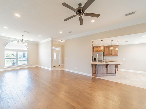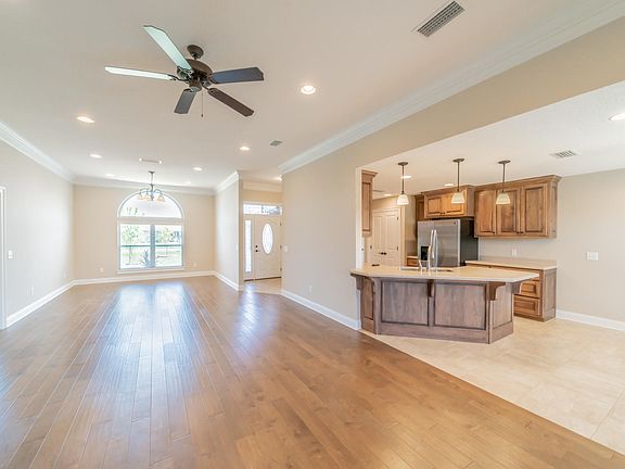 Strategically constructed all brick home that is built to withstand the most severe Florida storms. High quality double pane argon windows for optimal energy saving. Fully equipped alarm system installed, high tech irrigation system for lawn watering, seperate area for workshop/man cave in garage, fully walkable attic with plywood flooring, screened in patio in the backyard for barbeques, custom generator plug in garage, fully fenced in backyard, french drains in place for detering water away from the home to include new heavy duty rain gutters around the entire home, extra wide concrete driveway and sidewalk for extra space, St. Augustine sod and new rich soil put in 2018, stylish landscaping/gardens in front and back yards, seperate laundry room with its own sink, small fridge in garage and tv wall mount included above living room fireplace, recessed lighting throughout, electric remote controlled fireplace with several settings, several sliding (pocket) doors for space convenience, glow lighting around ceilings in bedrooms, real hardwood floors in living room/dining room area, lots of natural light so no need to turn on lights during the day. Primary bathroom includes; 2 separate vanities, 3 shower heads (including rainfall shower head) , 2 walk in closets, and great ventilation. So much more included in this well cared for home!
