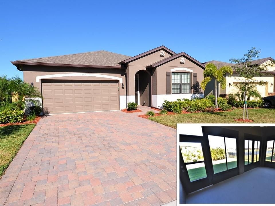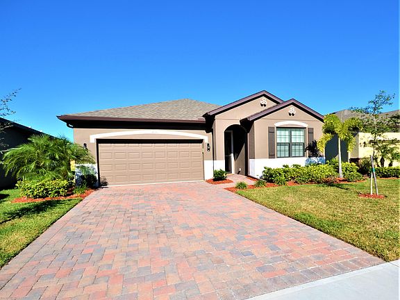 Move-in ready home with a great Florida room looking out a beautiful yard with palm trees and indirect view of a lake. This desirable home is located in ''The Savannahs'', which is the only 55+ community at Sawgrass Lakes. The floor plan flows very well, and the extra room with French doors can easily be turned into a nice 3rd bedroom, all you need is a closet! Upgrades include a beautiful and well made porch enclosure that has both sliding glass windows and screens, gutters/downspouts, a glass door at the front door to let more natural light in, a nice drop off/desk area with granite, inside laundry with a tub, and an attic pull-down ladder. Very easy to show!