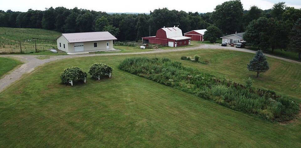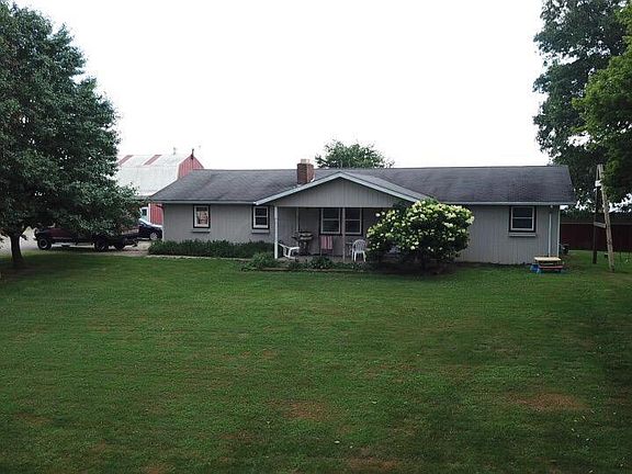 Ranch home with a Lovely hilltop setting. 3 Bedrooms - 3 Full Bathrooms. Spacious kitchen with eat-in space. Large Bonus finished living space just off the kitchen. Full basement with 1 Full bathroom. Outbuildings offer many uses. Fenced pasture with water available. Large driveway turnaround at house.Play house and swing set for children - stay with the house.