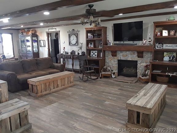 Spacious home on 10 Ac. Lg kitchen w island and huge pantry. Additional 10 -70 acres available (price will be negotiated). Downstairs master bedroom with 5x5 tiled shower w/ 2 heads, 6' jetted tub and double sinks. 25' x 18' game room. Guest house/mother-in-law suite with full kitchen and bath, 2 bedrooms and a loft. Stone gas fireplace. Upstairs are 3 bedrooms, office. Rm over garage has own bath & mini kitchen. Owner is a RE agent.