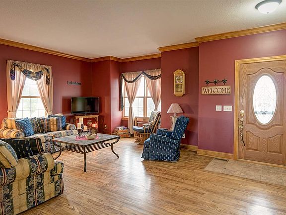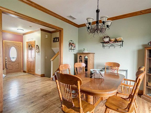 Check out this well maintained, 3-bedroom 2 full bathroom tri-level sitting on nearly 2 acres! This home features hardwood flooring throughout the home, crown molding in the living room, dining room, master bedroom and bonus room/den. The kitchen and breakfast nook offers beautiful solid surface countertops, gorgeous cabinetry with dove tailed pull out drawers, and sliding doors leading to an open deck. The master bedroom has a nice sized walk-in closet, solid surface counters and jetted tub. The bonus room/den could potentially be a 4th bedroom. The 39x20 three car attached garage is perfect for holding extra equipment or even a man cave! It is fully insulated with 10 foot ceilings. This home has a full walkout basement with a wood burning fireplace ready for finishing! The walkout in the basement leads to a patio area and the pool. The laundry room has utility sink. Wired for CAD 5 & COS Cable. Closed Loop Geothermal. Newer carpet in 2011, 6 year old pool/pool equipment. Fresh paint throughout. Newer landscaping. This home is a must see!