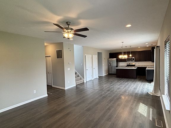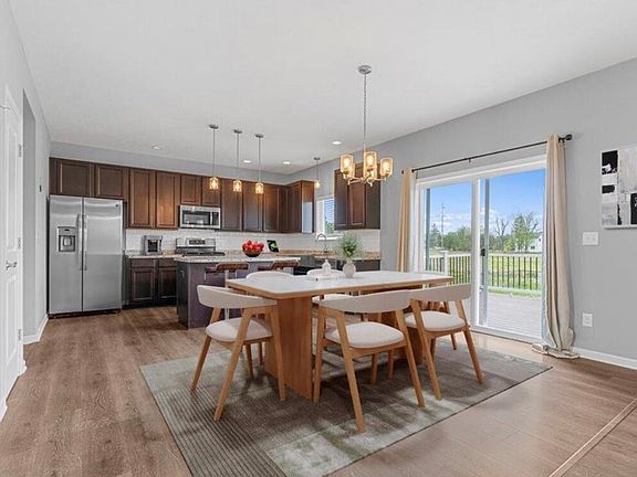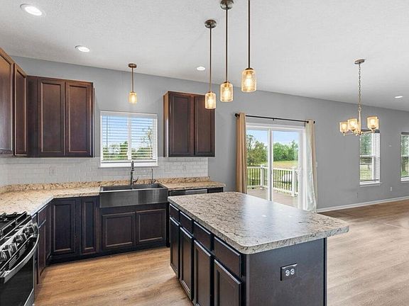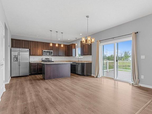 This newer home, built in 2020, offers over 1,800 square feet of beautifully finished living space plus an additional 900 square feet of unfinished basement space for storage or future use. Set in a peaceful setting with scenic surroundings, the home features a massive open floor plan where the kitchen, living room, and dining area come together in one expansive spaceperfect for entertaining and hosting guests. The stunning kitchen includes dark oak cabinetry, stainless steel appliances, and a large island, while a first-floor office, half bathroom, and sleek washer and dryer add everyday convenience.