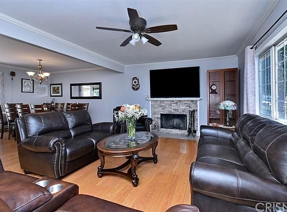 Welcome to this single-story POOL home with 1899 sq.ft. of living space on a 13,200 sq.ft. lot. This charming home sits in a quiet street of the highly desired prime Texas tract of Simi Valley, Ventura Countys Finest. Location! Location! Location! The phrase cannot be truer with this home. Located in an award-winning school district. Updated throughout. As you enter this home you will notice the open concept floor plan that is perfect for entertaining. You are greeted by the cozy picturesque fireplace in the living room with a large window bringing in natural light. The dining area flows into an updated kitchen with recessed lighting and ceiling fan that includes an expansive island, with seating for 6, which accentuates the utility and the beauty of the kitchen. Completed with stainless steel appliances, sleek countertops, and stylish cabinetry. Whether you love to entertain, or casual, everyday dining is more your style, youll love the openness of the living and dining areas. Double sliding glass door leads you to an inviting covered patio where you can dine, enjoy the refreshing pool, watch the children play in the oversized backyard, host your favorite backyard parties, or just relax. Custom built BBQ for the demanding cook. Large master bedroom offers high ceilings, fully remodeled master bath with stand alone shower, and beautiful view of the backyard and pool. Upgraded guest bathroom in the hallway. Hardwood floors throughout. Ceiling fans. Central Air and Heating. Direct access to backyard from garage with tons of storage. Conveniently located near shopping, dining, and some of Southern Californias signature outdoor activities like golf, biking, and some of the best hiking trails in Ventura County. These are some of the many features this wonderful home has to offer.