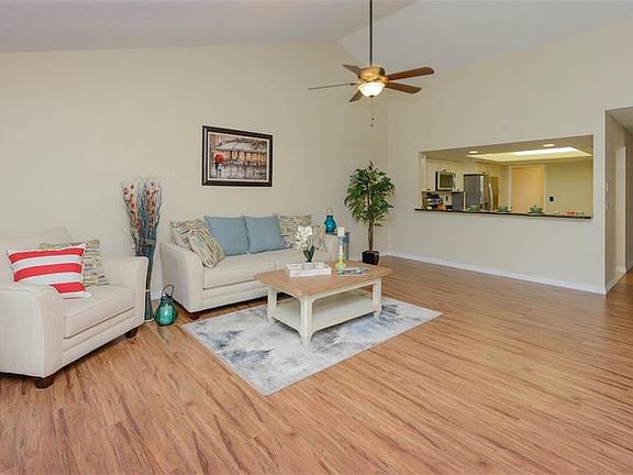 Stunning maintenance free Villa, completely renovated and ready for immediate move-in. With all the updates there is nothing else left to do but to enjoy your private retreat. Here are some updates that you can check off your list, Spacious and open new kitchen with all soft-closing and no-slam cabinet doors and drawers, lazy-susan, granite countertops, tile flooring and stainless-steel appliances. Two separate very species living spaces.Guest bathroom has large new vanity with granite counter-top, tile flooring and garden tub.Master bath has new vanity,enclosed shower,tile flooring and walk-in closet. The entire inside of the home has been painted and new light-fixtures added. Wood-looking laminate flooring installed throughout the home with new baseboards.The neighborhood is very well kept so is your maintenance free front and beck yard.Enjoy beautiful sunshine from your private and enclosed lanai. THE HOME COMES WITH A 1 YEAR HOME WARRANTY COVERAGE AND $1000 TOWARDS BUYERS CLOSING COST, call your agent for details and to schedule your private showing!