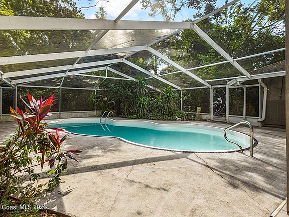 Experience the enchantment of this 3-bed, 2-bath home, nestled on a sprawling one-acre parcel in Canaveral Groves. Surrounded by lush greenery, it offers tranquility while keeping you close to Space Coast attractions. Explore the property to uncover hidden gems amidst the foliage - secluded mini-oases with charming benches and picturesque ponds, perfect for solace and reflection. An oversized two-car garage awaits your vehicles and projects. Outside, a grand fiberglass screened-in pool and spacious patio call for endless summer enjoyment, ideal for entertaining family and friends. This property harmoniously blends nature's allure with modern convenience, the ultimate retreat for those seeking solitude and community. Fine Florida Living Awaits!!