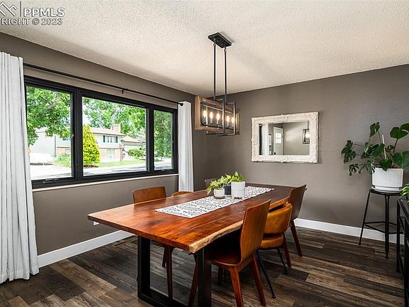 Beautifully updated and stylish 4 level in Raintree features 4 bedrooms, 2 baths, almost a quarter acre lot on a serine tree lined street on the N/E part of Colorado Springs! Pride of ownership shows as you enter the front door into a formal dining area that flows nicely into a kitchen complete with stainless steel appliances, gorgeous range hood and black stone countertops! A few steps away a wood burning fireplace in the family room provides a cozy winter-time ambiance to look forward to this fall. This home has the upgrades that count to include: Renewal by Anderson windows throughout, strategically placed skylights for an abundance of natural light to include the tranquil back patio, Portfolio water-proof flooring (this home has ZERO carpeting!) upgraded lighting and ceiling fans, 50-gallon water heater, cental A/C, 5" baseboards, A class 4 roof, and so much more! The 130-year-old Maple tree provides shade to the rear yard and is a true focal point of the outdoor living space this home encourages. A size XL storage shed and raised chicken coop are added features of the large backyard space. The garage has an abundance of storage space with wood cabinetry, ceiling shelf, and even an extra flex room to use as your heart desires! See for yourself just how enchanting this home truly is!!!
