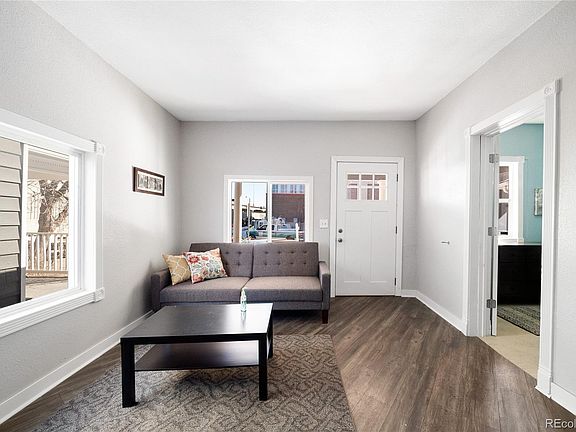 Bungalo charmer in this walkable corner of Denver. High ceilings! Two Bedrooms! Awesome old wood work details! All of the historic touches with all of the right modern updates. This Ranch style home offers a huge fenced back yard and a detached garage with alley access! Beautiful plank vinyl flooring in the great room. The homeowner has updated all of these major systems: Roof, water heater, furnace, Air Conditioner, The bathroom, the Flooring, and the Kitchen. The kitchen has new white shaker style cabinets and a new counter top. This Great kitchen design leaves room for a eat in kitchen space! Stackable washer/dryer in the bathroom. This turn key home is in the popular Globeville Neighborhood. Easily walk to a brewery from your home. This hip neighborhood features a very convienent commute to down town, the airport, or the ball game! Make this house your home and schedule a tour today.