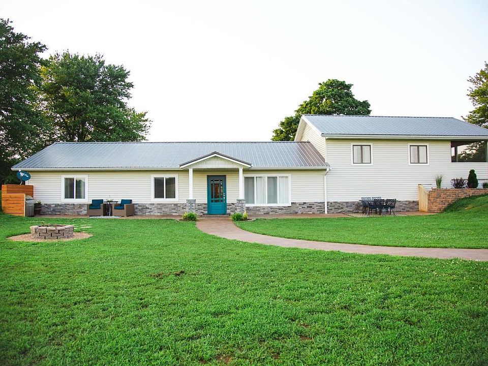 This super bright and spacious 3 bedroom 2 bath home with loft like high ceilings and features luxurious style throughout, energy efficient earth berm for added bonus. Master bedroom comes complete with modern bathroom and walk in closet. Home features generous living space with home office, playroom, living, and an impeccable kitchen perfect for entertaining. Beautiful engineered Hardwood throughout with upgraded linen textured tile, kitchen includes stainless steel appliances on a backdrop of black granite countertops and gentle grey cabinets. Screened porch offers beautiful views of front lot, yard features a fire pit and outdoor kitchen area, with basketball court, shed/well house, and over 400ft of privacy fence. Motivated to sell, call for your private showing.