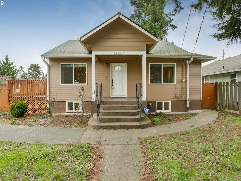 Amazing opportunity! 1927 Traditional Craftsman on a HUGE lot! New paint, updated electrical, windows, and roof. Finished basement with side entrance, spacious family room (nonconforming 3rd bedroom), laundry room, office area and tons of storage (Easy ADU). Slider in living room opens to deck and very large fenced yard. Build a dream shop/ADU on this giant corner lot. Close to parks, bike score of 82. Catered Open, Sun 3/3 1-4PM. [Home Energy Score = 8. HES Report at https://rpt.greenbuildingregistry.com/hes/OR10092614]