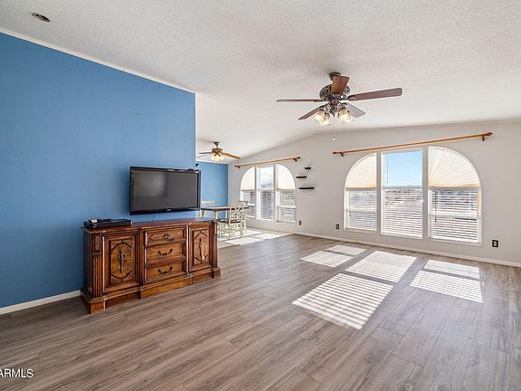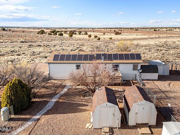Welcome to your sanctuary nestled on over 6 acres of land, offering the perfect blend of tranquility and convenience. This charming, manufactured home presents an opportunity to embrace a sustainable lifestyle, boasting a private well and solar panels. As you enter, you'll be greeted by a spacious interior bathed in natural light. The open-concept layout seamlessly connects the living, dining, and kitchen areas, ideal for both relaxing evenings and gatherings with loved ones. The kitchen features ample cabinetry, and a convenient center island, making meal preparation a breeze. Step outside onto the deck to enjoy grilling while taking in the wonderful weather. With its proximity to town amenities, including shops, restaurants, and school options, you'll enjoy the best of both worlds.