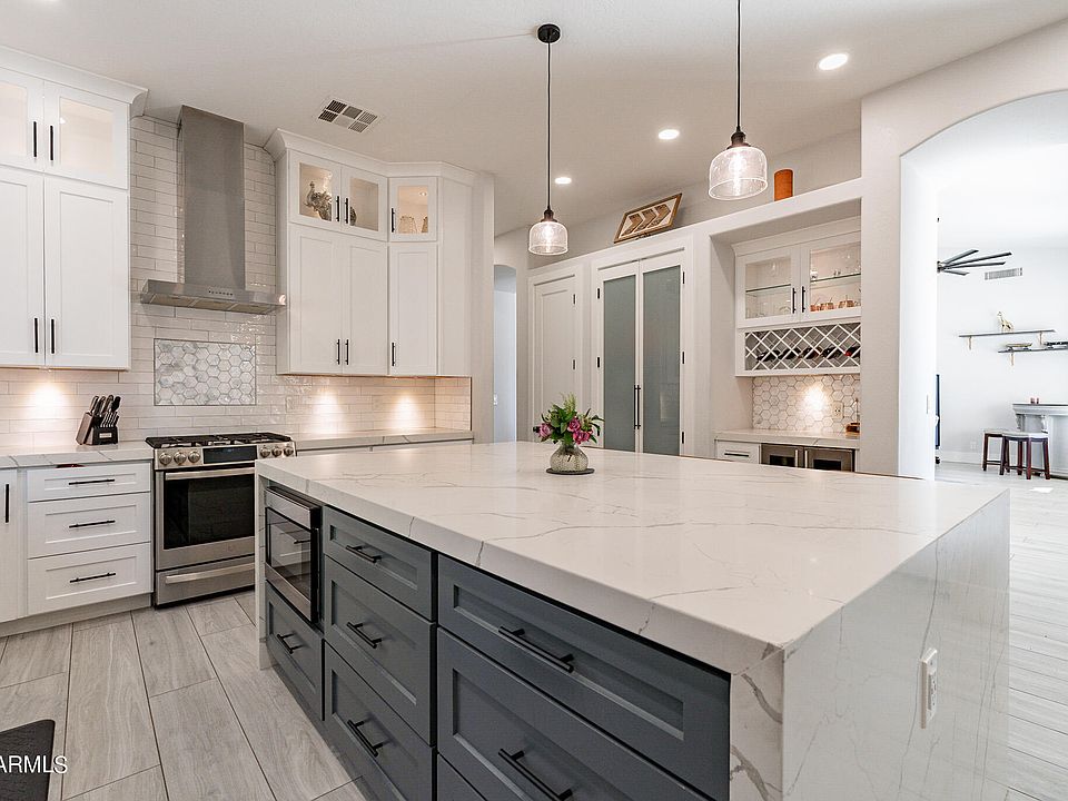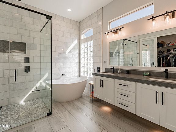 Step into luxury with this fully remodeled home w $200k in recent upgrades. A great split floorplan offers privacy and space. The gourmet kitchen features custom soft-close Shaker cabinets, stainless appliances, gas range, oversized island, stunning quartz countertops and beverage center. The kitchen flows into the family room, centered around a custom gas fireplace for cozy evenings in. Outside, the entertainer's backyard features a remodeled pool, BBQ island, covered patio, and synthetic turf for easy maintenance. Bathrooms feature custom floating cabinets with under-lighting and custom tile showers. Spacious Primary suite features a separate marble shower and soaking tub for total relaxation, dual sinks, walk-in closet. Wood-look tile floors, 3 car garage, new roof 2021. See More... Modern touches abound with wood-look tile flooring, new 8' interior doors and upgraded trim throughout. All of this situated in a highly desirable single-level subdivision close to highways, shopping, dining, and every convenience. Don't miss your chance to own this exquisite home where every detail has been thoughtfully designed and executed.