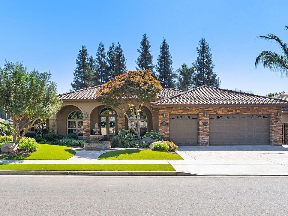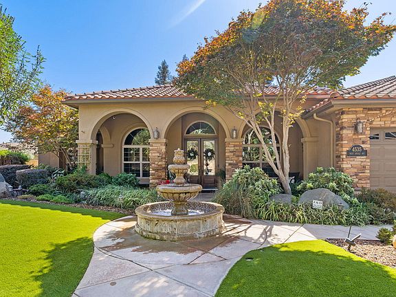 This one of a kind, custom built dream home, located in Riggin Ranch has everything you have been searching for! Welcome to 4535 W Oriole Ave in Visalia. The stone Ravenna, diamond pattern stamped concrete, and eco friendly artificial turf are just a few of the details that contribute to the stunning curb appeal of this home. Inside, delight in entertaining family and friends, where no expense was spared. From the extensive columns and archways to the hardwood floors and crown molding, the details are unmatched. The kitchen features granite counters, stone tile backsplash, stainless steel appliances, an oversized breakfast bar, and built-in wine cabinet. This split floor plan includes 4 spacious bedrooms, 3 bathrooms. Attention to detail was not missed in the master suite with designer lighting and a private luxurious bathroom retreat with his/hers vanities, a spa tub overlooking a glass shower with rain head, and private access to the backyard oasis. Enjoy the gorgeous backyard all year-round under the spacious patio or in heated pool and spa! Check off all the boxes including energy efficient solar (42 panels), whole house vacuum, outdoor shower, and two HVAC units! Don't miss out, call your realtor and privately view today!