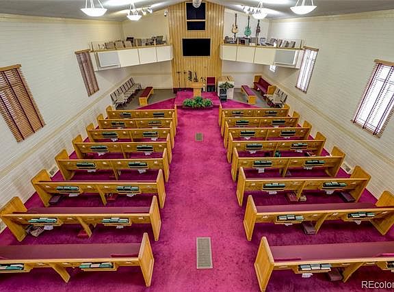 Impeccably rare maintained attractive church in Wheat Ridge! Complete with an efficient solar system (seller owned equipment). Many allowable uses including schools, group home etc. The new alignment of Wadsworth will improve ingress and egress. Adequate parking. Seller is downsizing and will consider exchange for a smaller church.
