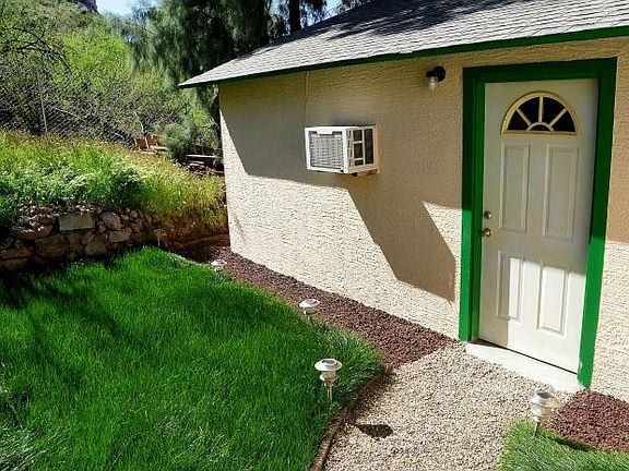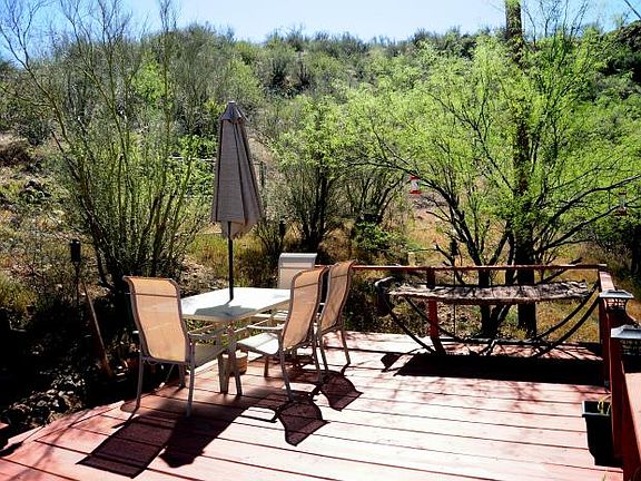 Site built Home, Beautifully landscaped, meticulously taken care of home has large mature shade trees in front, sits on over 2 acres, almost 1 acre is chain link fenced, large wrap around deck porch, connects (stairway) to 25' x 13' elevated out door living space - wooden deck, with supported 6' x 12' addition for hot tub, a 22' x 21.5' extra room (attached to house but no entrance to house, has own front and rear entrance) that could be used in a variety of ways - framed out as a rental or guest house, ( add a door and connect to 1,063 sq ft.house and make into a family or game room to up the square footage of livable /functional space to 1,536 ), a work shop or even a business, 51% of property is zoned C-2 and 49 % RU-43, newer (2013) private well, septic with leach field, 16 'x 12' storage shed ( Finished with drywall and laminate wood flooring) or other utility Area, water pump house 8' x 12' (cinder block construction) and tool storage shed/workshop, 9' x 9' concrete slab being used as a workout /gym, and a 45' x 19' concrete slab is what the storage shed sits on for a total of4 parking spaces, all landscaping in on an underground water soaker timer system, entire home is on a newer (2015) water softening system at the water main and kitchen sink has a reverse osmosis filter water tap, could make space for horses, but not currently set up as a Horse property cash or loan, VA, FHA & USDA loan eligible! , sorry, no owner financing.. call for more details 602 919-8325 parcel # 503-24-002Q