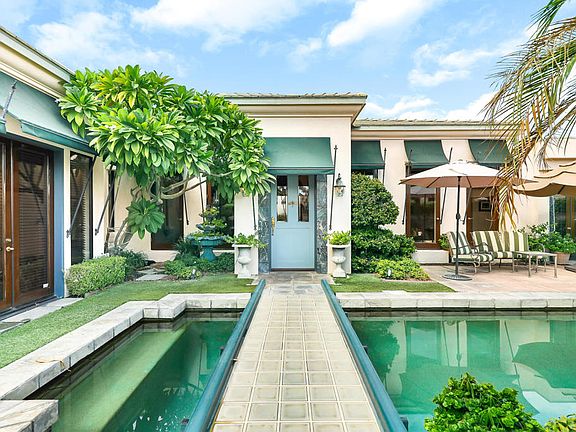 Indulge in the allure of a French flair ambiance in you custom-built, steel framed home oasis, in the prestigious gated community of The Cove at Indian Wells. A serene entrance through the gated courtyard, adorned with a glass tile bridge over the pool, leads you to an majestic front door. Inside, the grandeur continues with tall windows and high ceilings that fill with light the formal living room with fireplace, dining room and offer captivating mountain views. For comfort, luxury and privacy, all 4 on-suite bedrooms open to private patios with the primary bedroom accessing the spa. The large casita enjoys a separate entrance. The gourmet kitchen is a culinary paradise, featuring a center island, seating bar and breakfast room that adjoins the family room. Ideal for hosting and entertaining guests. Next to the kitchen is a convenient service area with large cabinets, refrigerator and laundry center. Step outside and enjoy the colorful landscaping, pool and spa and of course that view. Energy efficient solar panels, low HOA dues, freshly painted interior, new carpeting, new epoxy floors in both garages and the close proximity to essential amenities.