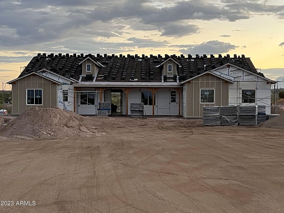Stunning new build home with 5 beds, 3 baths and gorgeous mountain views! This 2,756 sf, single level home sits on nearly 1. 5 acres with a 3-car garage. Frigidaire Professional stainless appliances with separate fridge and freezer and Broan hood along with large island, quartz countertops make this chef's kitchen a true delight! So many amazing features including 10' ceilings, 8' doors, stained beams in great room, surround sound, 2 split system AC units, LED under cabinet lighting throughout, plank tile flooring and black hardware - too many to list (see Home Features List in docs tab). Large primary bedroom has private patio and amazing walk-in closet, and full millwork detailed wall. Primary bath boasts huge, zero-grade entry shower with glass doors and separate soaking tub along with a beautiful chandelier and Deco shower tile to ceiling. Large laundry room w/cabinetry. The generous lot has plenty of room for a detached RV garage, pool and casita. Garage has 8' garage doors w/openers, and exterior features include 7' block wall on North (rear) property line. Patio, front entry, sidewalk and driveway approach to be completed with pavers. West side of lot will be terraced with landscaping. Truly a beautiful home!