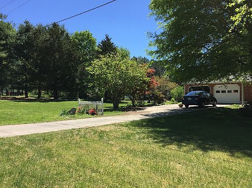 Brick rancher sitting on a beautiful corner lot of one and a quarter acres, nestled in a very quiet neighborhood. There are 2 bedrooms on the main floor with a possible third in the basement (great for a third shift worker) could be used as an office or play area for children, endless possibilities .1 full bath and 1 half bath on main floor, half bath is located in the master bedroom along with large walk in closet. Living room, dining room and kitchen also on main floor. Basement is 3/4 finished with large family room that includes nice wood stove. Also in basement is a half bath and large washroom with mop sink and lots of shelving for storage. There is lots of storage throughout house and attached two car garage. Beautiful shade trees, back deck, front porch and spot for a vegetable garden at rear of property. House has new architectural shingle roof, also has concrete driveway with side by side parking for two cars. Large out building, with new garage door, for mowers and/or shop. Also a second smaller out building. Fantastic area schools. Located in the county but only 5 minutes from the city.