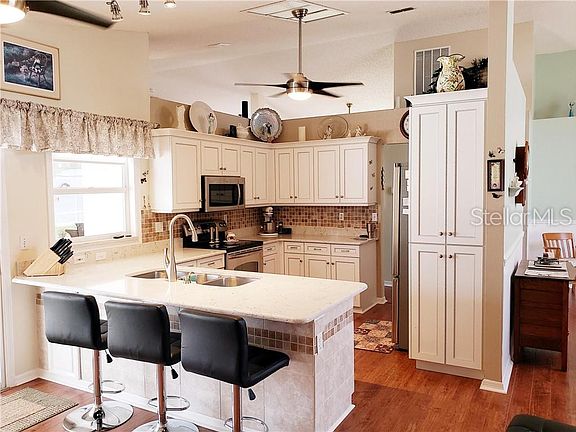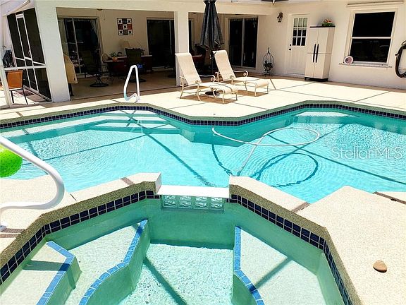 THIS 4 BEDROOM HOME HAS EVERYTHING AND MORE! Better than buying a New Home! Extras Galore! Mrs. Meticulous definitely lives here! The Pool was converted to Salt Water and Spa has a Smart Pump Heater! Please see Attached Sheet with all of the Awesome Upgrades! Walk into the Stylish Master Bedroom with Vaulted Ceilings, two Walk-In Closets, Separate Vanities, Garden Tub, Tiled Shower, and Water Closet! Walk out to the Lovely Living Room overlooking the Dining Room with a Fireplace and new Hurricane Window! Dining Room is now being used as the Family Room and Family Room is used as the Dining Room as they have lots of Company! Spacious Family Room has nice Fireplace, High Ceiling, and Newer Windows. Enjoy the Wonderful Kitchen with Granite Countertops, all Stainless Steel Appliances, Service Window to Lanai, Built-In Cabinets, and Sliding Glass Door leading to Lanai. Down the Hallway are the other three Beautiful Tiled Bedrooms and the Second Bathroom that walks out to the Lanai. The Fourth Bedroom is used as an Office and overlooks the Pool. Mr. Meticulous has everything organized outside, along with Storage Bins for all of the Pool items. The Dogs have their own Run behind the House and there is little maintenance in the backyard. Relax in the Large Tiled Lanai overlooking the Inviting Pool and Spa, along with an outdoor Side Patio to enjoy the elements. Roof was replaced in 2010 with Peel & Stick added to entire surface, 50 Gal Water Tank in 2017, and much more! AND, pay only $265/year for HOA Dues!