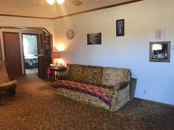 Enjoy country living on this 9.9 acres MOL property with a 3 bedroom, 1 Bath Home with living room, dining area, laundry room, carport. The exterior features several outbuildings, a 40x24 Barn and a nice pond.