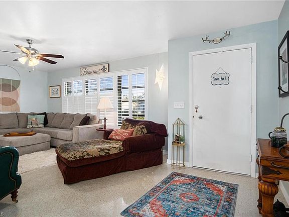 All the Charm and picturesque are in this 3bd/2bath/1 car garage 1063 sq ft fenced-in single-family home about a mile and a half away from the BEACH, in the heart of downtown Cape Coral with updates to maintain the quaint Florida comfort! Features granite countertops, 2012 roof, 2020 water heater, A/C, Terrazzo flooring, ceiling fans & plantation shutters throughout, washer/dryer, separate outdoor private entrance to en-suite, and furniture is negotiable. Just move right in, walk or bike to the beach or downtown or enjoy gatherings by your built-in outdoor fireplace in your private courtyard with ample space for a pool! All assessments are paid. This loving home awaits your arrival!