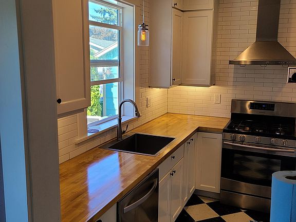 900sf upstairs, 2 bedrooms, 1 bath (jack and jill), original 1923 hardwood floors, stainless steel appliances, gas range, gas fireplace, plus 900sf partially finished basement with 1 bath and large bonus room (potential bedroom). Single-car garage, planter boxes, firepit, covered patio, off-street parking. Relatively quiet, tree-lined street. Easy access to bus lines 17, 71, and 10. Close to bars, restaurants and shopping in FoPo and Woodstock including New Seasons, Ace Hardware and Safeway. There are existing renters, so we will need to work with their schedule for showings. **I have 20+ applications summited. To be fair and efficient, I am only offering tours to those who have submitted applications that pass the application criteria, and in the order they have been received.** Please do not submit a request for additional information or request a tour if you have not already submitted an application.** Garbage included. Renter's insurance required. Excellent credit required. No smoking in the house. $40 pet fee.