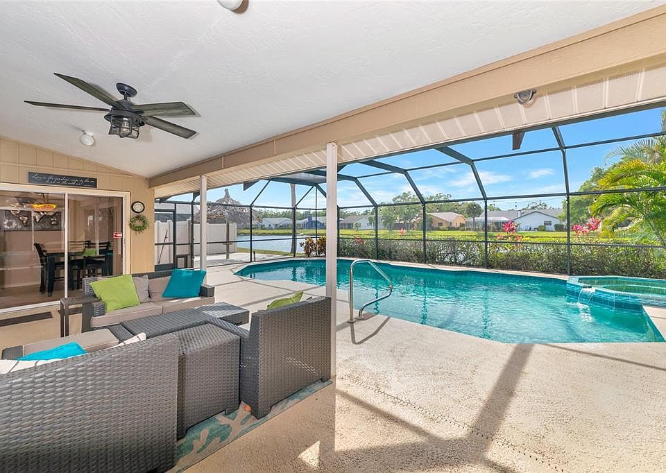Get ready to live a life surrounded by the best the area offers in this amazing Florida-style pool home just minutes away from watching daily sunsets on Siesta Key! Situated on a nearly 1/4 acre waterfront lot with a circular driveway, the split floor plan lives much larger than the square footage suggests, thanks in part to the screened front entrance, vaulted ceilings, and the outdoor living space created by the privacy-hedged and screened-enclosed heated pool, spa, and lanai. The light and bright kitchen has its own lanai entrance in the breakfast nook and features a pantry, a passthrough bartop to the adjacent living room, and a stainless Bosch refrigerator and dishwasher. The lanai's final set of sliding doors lead to the primary suite, which flaunts a walk-in closet and an ensuite bath with a dual sink vanity, shower, and garden soaking tub. What's more, the home boasts a bonus office/study or nursery just outside the master, a dedicated laundry/mud room leading to the two-car garage, and a new roof and solar panels that were installed in 2018. The friendly neighborhood is located close to all the shopping, dining, golfing, A-rated hospitals & schools, hiking/biking trails, and entertainment options that Sarasota has to offer; Then, when it's time to explore the Suncoast, a quick jaunt to I-75 or US-41 and you're on your way to St. Pete/Tampa, Ft. Myers/Naples, or anywhere in between!