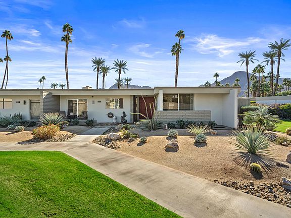 Magical South Facing Views and Open Greenbelt Vistas in Lovely Indian Wells! Located in Casa Dorado in a highly sought after location, sporting significant architectural Mid Century Modern Design As you enter, embrace the spacious open layout and seamless flow between the Kitchen, Living and Dining areas that make hosting gatherings a delight! Bask in the glow of natural light pouring through the stunning floor to ceiling windows, framing those breath taking mountain vistas and bringing in the beauty of the outside inside! Boasting 2 generously sized bedrooms and bathrooms, each open to a patio, designed with comfort in mind.! The primary bathroom offers double sinks and abundant storage. The custom stone flooring and warm fireplace provide a cozy atmosphere. Located just steps away from the sparkling pool/spa, providing the ultimate in leisure and relaxation! The Large back patio overlooks open greenbelts and is encircled by the mountains. Not to be forgotten is the conveniently located garage, making everyday living a breeze. This is the dreamy indoor/outdoor lifestyle we LOVE! Savor the upscale vibrant vibe in Casa Dorado, featuring a 4- Hole, Par 3 Pitt 'n Putt, Tennis, Pickle ball, Clubhouse, all in in FUN social setting! Added Value, as an Indian Wells Resident, enjoy discounted Golf at the IW Resort Course, use of the Gym at the Hyatt and Indian Wells Tennis Benefits! This Home is a RARE find, with the outstanding VIEWS you'll ADORE!