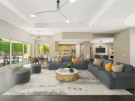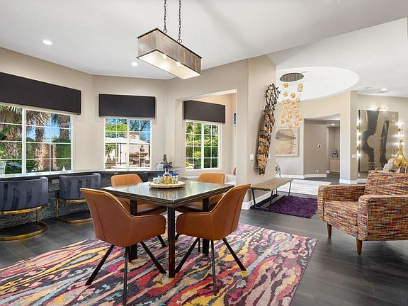 Wonderful 4300+ sq. ft. compound at the prestigious Indian Wells CC! This 4 bedroom, 4.5 bath home also has an office and a large bonus room perfect for a 5th bedroom/ children's play area. OWNED SOLAR system, new luxury waterproof vynil flooring throughout (except the 3 beds which have beautiful high quality carpeting), updated kitchen with stainless steel appliances, custom kitchen cabinets and brand new porcelain kitchen countertops, high ceilings, private front and back patio areas, artificial turf ( front and back) with practice putting green are just some of the many features of this lovely property. Enter this fabulous home from the front courtyard, with fireplace, through double doors into a large great room, perfect for entertaining. A wall was removed to open the chef's kitchen to the great room to maximize the open floor plan. New pocket sliding door was added with the support of a steel beam in an effort to open the living and dining area to the outside and create a more flexible space with indoor / outdoor living. The space designated for a formal dining room has been completely reimagined with a sunken wet bar crafted with honed granite. Too many upgrades to mention. You must see this unique home.