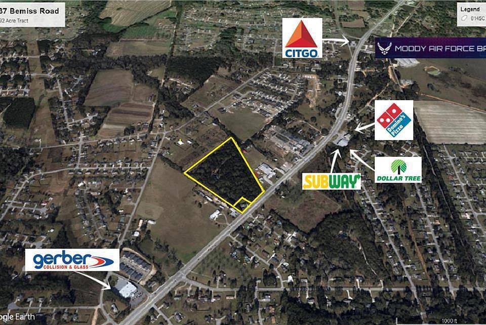 14.45 acres over two tracts of high and dry land available FOR SALE directly in the path development of booming North Lowndes / Bemiss Road sub-market. Only 2.8 miles south of Moody Air Force Base with 20,000+ average daily traffic count, 405' of prime Bemiss Road frontage. 1000's of new rooftops all around this site with commercial growth happening both north and south of this location along Bemiss. County water / sewer available here, ready for large, multi-family, and / or mixed use type of development. Nearby national brands include neighborhood Wal-Mart, Dollar Tree, Dollar General, McDonald's, Wendy's, Taco Bell, Domino's and more. Property priced at $79,900/acre with 2,613 sf single-family brick home located on the property to be leased with 60 day kick-out clause in place.