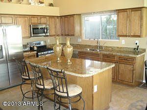 Roll out the Welcome mat! Fabulous Tatum Ranch home, upgrades thruout. Vaulted ceiling & formal livingroom. Ceramic tile thru main living areas w/carpet in BR's. White shutters thruout. New kitchen in 2011. Gorgeous granite in kitchen & baths. Formal dining & eat in area. Isl kitchen, stainless applncs, brkfst bar, gas range & large pantry. All opens to greatroom w/gas fireplace. Bedrooms are spacious & comfortable. 4th BR is office. Master has double sinks, custom mirrors, glass block, jet tub & separate shower. French door master exit to patio. Backyard is the perfect size w/covered patio overlooking heated play pool/spa w/water feature. Built in BBQ, fridge & bar top new in 2013. All tastefully landscaped with a low maintenance desert design. Cabinets in garage. Bonus items thruout!!