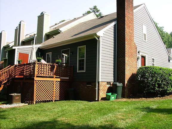 Brittany Woods end unit close to RTP, I-540/I-440, Crabtree, Brier Creek and RDU. Upstairs bonus room is a roomy and vaulted 570 sqft. 1,449 sq .ft. with first floor master bed and bath and second bed and bath. Great starter or retirement home! Large kitchen with bay window. New deck overlooking greenbelt. Neighborhood Description Well-established neighborhood with mostly young professional or retirement-age individuals.