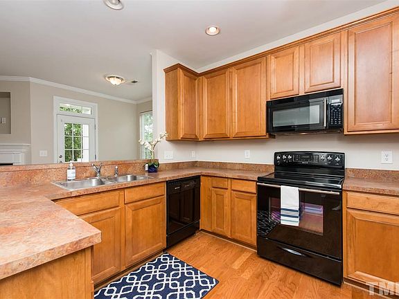 Light & bright end unit townhome that is move-in ready! 4 Bedrms, 3.5 Baths. Fresh paint throughout interior, Hardwood flrs, Tile flooring in all full baths, Recessed lighting in kitchen, Trey Ceiling in Master, Gas Fireplace in Living Rm. A/C & Water Heater new in 2014! 1 Car Garage. Large Bedrm on 1st Flr could be bonus rm. Don't miss storage under stairs on 1st Flr. Great neighborhood pool! Minutes from Cary or downtown Raleigh. Fridge, Washer & Dryer included!