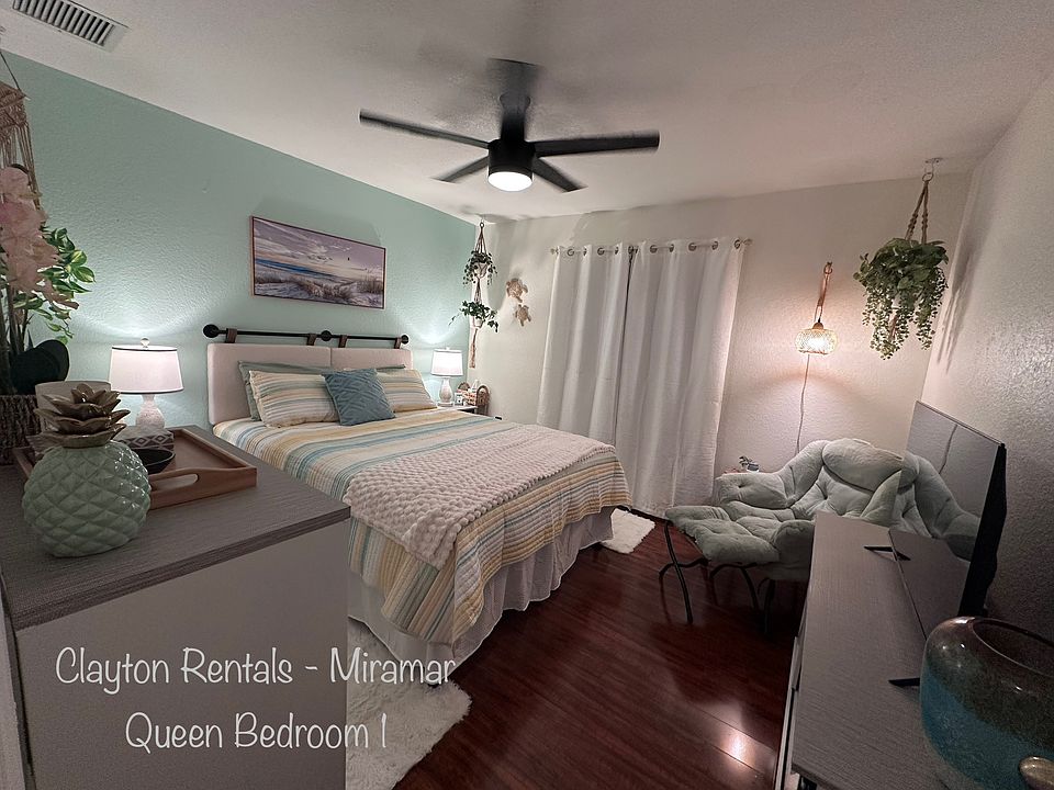 Turnkey, fully furnished home in a resort-style gated and guarded community! This beautifully maintained property features upgraded impact windows throughout, providing safety, peace of mind, and excellent energy efficiency. Inside, the home offers a clean, modern layout with stylish furnishings, making it truly move-in ready from day one. Located in one of Miramar's most desirable communities, residents enjoy 24/7 security, lush landscaping, and access to resort-like amenities. The neighborhood is close to top-rated schools, shopping, dining, and major highways for an easy commute. Perfect for renters seeking comfort, convenience, and a high-quality living environment. Just bring your suitcase everything you need is already here. This beautiful home features: - King Size Master Suite - Spa like master bath - Queen size suite - Twin beds suite - Convertible Queen size guest suite - Guest bathroom - Half bathroom - Office space - Fully loaded kitchen with stainless steel appliances - Spacious dinning area - Laundry room - Double car garage - Covered patio - ADT Alarm Monitoring - Perimeter Security Cameras - Alexa Smart Home Lighting Short term lease only: minimum 6 months, max 12 months. Utilities (water, electricity) included up to $450.00 monthly. WIFI, alarm, and HOAs fee included. Monthly indoor cleaning included once a month and all lawn and outside peat control included. ABSOLUTELY NO SMOKING PERMITTED. Smoke monitoring and Carbon Monoxide monitoring included in rental fee. Small pet (1 dog or one cat) is NEGOTIABLE. MUST ABIDE BY ALL HOA BOARD RULES, which include quiet hours and no LOUD PARTIES. No SUBLETTING AND MUST APPLY TO RESIDE WITH HOA AND OBTAIN PARKING DECAL.