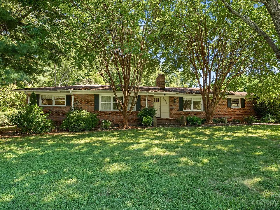 Updated ranch on serene 1/2 acre lot! Home has many updates throughout such as renovated bathrooms, kitchen/breakfast room addition w/a vaulted ceiling and w/windows overlooking back yard. The original front living room is spacious, and is one step down. This would make an ideal quiet office space, or could potentially become a 4th bedroom or playroom! The original den is now open to dining, kitchen and breakfast spaces and all have hardwood floors. There is a mid-century modern style fireplace with gas logs. The exposed brick adds a nice touch to the space! The kitchen features light wood cabinets w/solid surface counters and an island with a granite countertop and niche for microwave. There is an attached two-car garage, and patio with a pergola! This lot has mature plantings for privacy, and backs up to wooded area. Having a garage, vaulted ceiling, and open floor plan are all hard to find in this age home - what a great opportunity! Large storage shed in back yard + garage storage